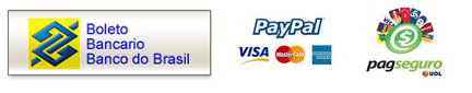 O pagamento da mercadoria pode ser feito através de depósito bancário ou através dos seguintes sistemas de pagamento online: PagSeguro e Paypal.